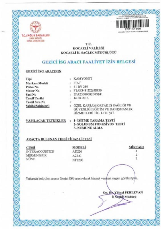 –Eğitim ve Danışmanlık olarak, sağlık hizmetlerimizi sağlık tarama aracımızla; kurumunuza gelerek, Laboratuar Tetkikleri, Akciğer Grafisi, Odio ve Solunum Fonksiyon Testlerini gerçekleştirebilmekteyiz. Ayrıca, sonuçlarımız doktor onaylıdır. İşleyiş prosedürü ve fiyat teklifi için, periyodik testler ile sağlık taramalarını yapacağınız dönem öncesi bizlerle irtibata geçmeniz dileğiyle…